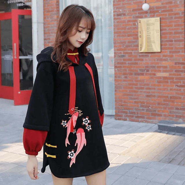 Hoodie Coréen à capuche en coton façon robe décontractée.